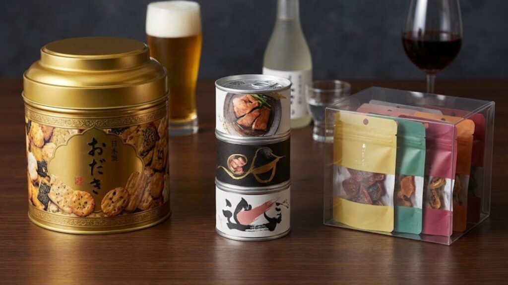 対して、個包装された高級おつまみや、こだわりの缶詰はどうでしょうか。